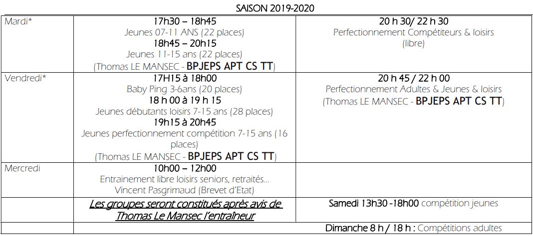 Il encadre différents publics au sein du club, les mardis et vendredis :